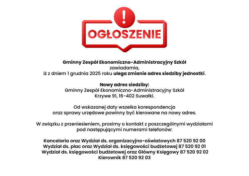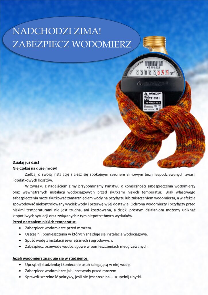 Gmina Suwałki uprzejmie informuje, że w miejscowości Mała Huta w dniach od 27.11.2025 r. do 28.11.2025 r. w godzinach 08.00-14.00 będą odczytywane wodomierze. Prosimy mieszkańców wsi o udostępnienie w powyższym terminie dostępu do wodomierza lub spisanie i podanie wskazań licznika Inkasentowi (istnieje możliwość wywieszenia karteczki z odczytem w widocznym i dostępnym miejscu lub podanie odczytu tel. 667-676-787). W przypadku braku możliwości odczytu, zostanie wystawiony rachunek według średniego zużycia.